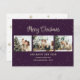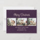 Elegant lila fotojulkort med fotokollage och fallande snö på mörkens lila. Anpassa enkelt det här lila julkortet med ditt favoritkort bilder, en familj namn och text.
