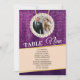 Elegant Lila Sparkly Photo Seating Chart Card Grab själv ett unikt, modernt och elegant sittande diagram som medföljer glitter, gnistor och ett gyllene/diamant ram, där du kan lägga till paret bild. ram är så elegant och det är en komplimang för dig som ett par inuti det. Konstruktionen är minimalistisk, men ändå är elegant och chic med en gyllene accent och en aning kalligrafiskript på numret på bord.