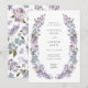Elegant lila syrlilja bröllopsinbjudan. Tillkännage ditt bröllop med stil med denna fantastiska inbjudan, som visar en delikat handmålad krans av akvarellsyrliljor i drömlila, lila och blå nyanser, accentuerad med frodig grönska. Det graciösa blomsterarrangemanget omger dina bröllopsdetaljer och skapar en romantisk och tidlös estetik som är perfekt för vår- och sommarfiranden. En vacker koordinerad bakgrund förstärker designen och ger en extra touch av elegans till varje detalj. Personalisering är enkel – uppdatera enkelt formuleringen, justera teckensnittsstilar och storlekar och ändra bakgrunden för att skapa en anpassad look som kompletterar ditt bröllopstema. Sätt scenen för en