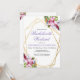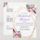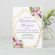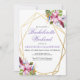 Mjuka rosa och lila tropiska akvarellblommor inom en gyllene dubbel geometrisk ram pryds av botaniska och festliga detaljer. Anpassa denna inbjudan till möhippa med dina egna färger och typsnitt eller behåll denna populära typografi som den är för din bekvämlighet. Blanda och matcha med andra föremål i denna vackra brölloppskollektion.
