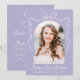 Gratulerar till att du har lyckats med student med denna charmerande studentfest, som innehåller student foto som visas i ett vackert båge ram, accentuerat av en handdragen vit båge och ett band på mjuk lila. Student namn visas i ett vitt skript, där skolåret och studenten visas nedan för en personlig. På den andra sidan av inbjudan finns all viktig information om studentfesten, och skapar det vara enkelt för dina gäster att gå med firande. Med sin perfekt blandning av modern design och tidlös elegans är denna inbjudan ett underbart sätt att tillkännage student speciella dag!
