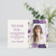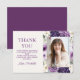 Elegant födelsedagsfest Tack för kortet för kvinnor med söt vita och lila handmålade blommor. Personlig med hennes foto och Tack. Kontakta mig om du behöver hjälp med dina anpassningar eller om du vill begära ytterligare matchande Zazzle-produkter för party.