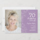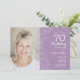 Lila lila syren vit blomster 70-årsdag inbjudan med ditt foto på framsidan av kortet. Elegant modern design med botaniska teckningar och typsnittsstil. Enkel trendig inbjudan perfekt för en stilfull kvinnas födelsedagsfirande. Kan anpassas till valfri ålder. Utskrivna Zazzle-inbjudningar eller direkt nedladdningsbar digital utskriftsbar mall.