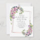 Elegant lilac lila blommigt botaniskt inbjudningskort för möhippan med faux koppargeometriskt ram på vit bakgrund