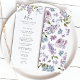 Impress dina gäster med en elegant bröllop-meny som kompletterar din bröllop-décor. Med en delikat, handmålad blommigt arrangemang av laktor i lavender, lila och blått, tillsammans med lush grey, visar den här menyn på ett vackert sätt dina noggrant krökta måltider. Den förfinade designen förbättrar tabellutrymningen samtidigt som du lägger till en personlig vid varje ställe-inställning. Uppdatera enkelt ordalydelsen, teckensnittet stilar och storlekarna så att de stämmer överens med ditt bröllop-tema och skapa en sömlös matupplevelse fylld med charm och sofistikering.