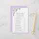 Tittar ni för det spel om möhippa av perfekt som kommer att föra ut tonvis av roligt och skratt? Titta inte längre! Eleganten Lilac Lavender Blommigt Möhippa "'bride or groom gissa vem!'' Game är här för att få party att planera en paus. Det här spelet har söt ro vattenfärgsfärgade blommigtar, lilac lavender färg tema, snygg kalligrafi och elegant serif-typografi. Det är perfekt för möhippor och förlovningsfester! Få redo för många skrattar - garanterat! Låt detta vackra spel vara en del av ditt speciella firande, så att du kan skapa minnen som kommer att vara i en livstid. Visa hela sviten här: https://www.zazzle.com/collections/elegant_lilac_lavender_floral_bridal_shower-119730120254921497 Kontakta designern för matchande produkter. Copyright Anastasia Surridge for Elegant Inbjudningskort. Alla höger reserverade.