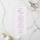 Modern bröllopsprogram med en enkel och minimal utformning med namn tillsammans med sidhuvudena på baksidan i ett handskript i contemporaryn. Paletten färg är lavender/lila och kan ändras i designredigeringsverktyget i verktyg. Denna contemporary fungerar bra för alla stil i bröllop.