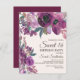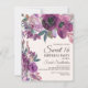 Vacker och elegant, lilac och plum lila blommigt botaniskt vattenfärg Söt 16 födelsedagsfest inbjudan på en gräddvit bakgrund.
