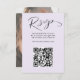 Denna moderna OSA kort sammanför elegans och bekvämlighet med ren, contemporary typografi på en mjuk lilak bakgrund. Ett särskilt QR-kodavsnitt gör det möjligt för gästerna att snabbt få tillgång till din bröllop webbplats eller OSA, vilket förenklar processaa för svar. Den omvända sidan ger dig en personlig beröring med utrymme för ditt foto och monogram, vilket ger en unik och minnesvärd detalj. Den här eleganta designen blandar minimalismen med sofistikering helt och hållet anpassade, och ser till att den kompletterar alla bröllop stil samtidigt som den hjälper dig att enkelt samla svar och stil.