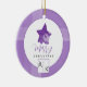 Elegant Lilac Violet Tartan Monogram Julgransprydnad Keramik