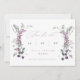 A beautifulwedding save the date announcement card featuring 2 loose boughs of lilac watercolor wild flowers with green leaves. "save the date" is in modern calligraphy script font in lilac.