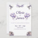 Följ med oss när vi firar Olivia och James union med denna vackra lila bröllopsinbjudan. Med ömtåliga blommiga arrangemang och elegant typografi sätter denna inbjudan tonen för en romantisk bröllopsfest. Personifiera den med dina detaljer för att göra den unikt din.