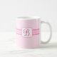 Eleganten mugg har rosa rand och ett anpassade som börjar på framsidan och baksidan.