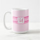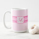 Eleganten mugg har rosa rand och ett anpassade som börjar på framsidan och baksidan.