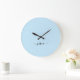 Modern klocka med ljusblå bakgrund och ett handskrivet svart, gigantiskt skript namn. Anpassa med ditt namn