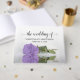 Denna vackra gäst bok i bröllop har en romantisk utformning med en enda, långtråkig lila eller lavender färgad ro som ljuger på sin sida och reflekterar i ett bassäng i vatten. Texten lyder: Bröllop i.. med namn och bröllop. Underbart sätt för dina gäster att lämna väl önskemål och en tidlös minnesstund över er speciella dag.