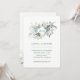 Dessa eleganta, minimalistiska brölloppsinbjudningar har trendig akvarellgrönska och botaniska blad på en ren vit bakgrund med enkel modern text och era initialer.
