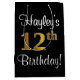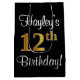 Denna lyxiga, snyggt- och sofistikerade presentsäcksdesign ger ordnumret "12:e" ett stort utseende som präglas av faux/imitation guld, förutom ett hälsning-födelsedagsmeddelande och en redigerbar mottagare namn i ett typsnitt av typen manus-stil. Den har också en bakgrund med svart färgad. En sådan här presentpåse på snyggtens födelsedag kan vara ett roligt sätt att figurera en gåva eller present som ges till någon som firar sin födelsedag i 12:e. [~Z0000513]
