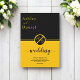 Den här eleganten svart och guld bröllopsinbjudan är perfekt för ett modernt bröllop. Ljudsymbolen har elegantens kalligrafi i guld på svart bakgrund.