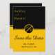 Den här eleganten svart och guld bröllop spara datum är perfekt för ett modernt bröllop. Den enkla designen har elegant svart kalligrafi på guld.