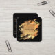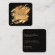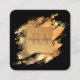 chic av professionell, lyxfritt affärskort med glamourous faux guld-geometrisk kvadrat innehåller monogram initialer och fullt namn i mitten framför med en konstnärlig penselmålning mot svart bakgrund och social-mediekonton med ikoner.
