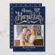 Elegant Lycklig Hanukkah Navy Blue and Guld Photo Helgdag Card