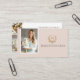 Förhöj ditt hem-bakery-varumärke med vår Elegant Lyx Hem Bagare Affärskort Mall av ©Moodthology Papery. Denna chic och klassiska design har en ren, sofistikerad layout med en handritad blomster vintage guld blomsterkrans på framsidan, perfekt för att visa din monogram ovanför ditt företagsnamn. Lägg till ditt foto för att anpassa kortet och ge ett minnesvärt första intryck. Baksidan låter dig visa ytterligare två foton, en QR-kod och din kontaktinformation och sociala medier-hanterare, vilket gör det enkelt för kunder att ansluta till dig online. Idealisk för hem-bagare, bageriföretag, catering-tjänster och konditorer, kombinerar denna anpassningsbara mall elegans och funktionalitet, vilket hjälper ditt varumärke att sticka ut.