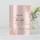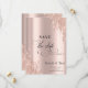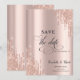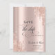 Denna vackra design har eleganta rosa guld glitterdroppar på rosa guld bakgrund. Vackert spara datum som kan anpassas med ditt namn. Välj "anpassa" knappen för att ändra teckensnitt, färg och storlek.