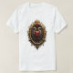Elegant lyxigt hjärtemblem. Konstruktionen har en ornerad, bågad guldfärgad ram mot en övertoningsbrun bakgrund. Ram är mycket detaljerat med baroque-stil blomning. Hängande från översta bågen är ömtåliga gyllene kedjor med droppstift. I centrum i grund finns en mindre, på liknande sätt formaterad guldfärgad ram-visning en röd hjärtemblem försedd med vingade serpent. Den allmänna stämningen är lyxig och dekorativ.