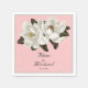 Fira en bröllop eller speciell händelse med en elegant vattenfärg av elfenbensmagnoliska blommar mot rosa bakgrund. Klicka på anpassningsbar om du vill ändra namn, data.