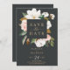 Den här eleganten magnoliasvart sparar datumkortet som perfekt för ett modernt klassens bröllop. Den moody blommigten har vattenfärgade rosa-peonier, förbluffande vita magnoliska blommor och bomull med guld och grönt löv i en lyxig arrangemang på mörkens bakgrund.