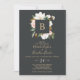 Den här eleganten är en perfekt för ett modernt bröllop. Den moody blommigten har vattenfärgade rosa-peonier, förbluffande vita magnoliska blommor och bomull med guld och grönt löv i en lyxig arrangemang på mörkens bakgrund. Anpassa kortet med ditt sista monogram.