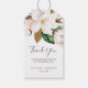 Dessa eleganter, magnolia, vita och tack som du vill ha märkre är perfekt för ett modernt klassens bröllop. Den mjuka blommigten har vattenfärgade rosor, förbluffande vita magnoliska blommor och bomull med guld och grönt löv i en lyxig arrangemang. Anpassa etiketterna med namn och datum. Ändra ordalydelsen till kostym hur som helst: möhippa, repetitionsmiddag, babydusch med mera!