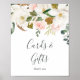 Denna eleganta skylt med magnolia vita kort och gåvor är perfekt för ett modernt klassiskt bröllop eller brudshow. Den mjuka blomdesignen har akvarell rosablommiga peonior, fantastiska vita magnoliablommor med guld- och gröna blad i ett lyxigt arrangemang. Textraden längst ner på skylten kan anpassas med datumet, brudens och brudgummens namn eller ett kort meddelande som "Tack". Denna skylt kan användas för ett bröllop eller någon annan händelse eller fest.