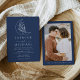 Vi presenterar den Elegant inbjudan till fotobröllop mellan botaniska Måne och Stars, en harmonisk blandning av helig skönhet och naturlig elegans. Denna moderna bröllopsinbjudan innehåller en delikat vit konst som illustrerar ett måne, som är försett med dubbla stjärnor och spola botaniskt löv, allt mot en marin bakgrund. Utformningen har förbättrats med subtil modern kalligrafi, vilket ger en aning sofistikering och contemporary. Inbjudan går tillbaka för att visa fotot på förlovningen för lodrät med webbplatsen bröllop som visas nedan. Perfekt för par som drömmer om ett bröllop som är både tidlöst och förtjusande, denna bröllopsinbjudan till marinen fångar på ett vackert sätt er speciella dags magi.