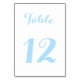 Skapa din egen anpassade, personliga, eleganta, stilrena, vackra ljusblå typografi manus, modern chic ljusblå och vit, högkvalitativt bordskort. Perfekt för bröllop, brudshow, middagsfest eller annat speciellt tillfälle. Skriv bara in tabellnumret för att anpassa.