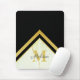 Den här musmattan har en snyggt-chevron-design med ett guld-monogram på en geometrisk marmor ram och svart bakgrund. Finns även i silver/svart version.