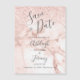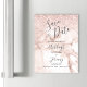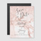 En modern chic med en elegant marmor bakgrund som trimmas med faux glitter i skuggor av ro guld, rosa och vitt. Orden "Spara datum" och det första namnen av briden och trimmen visas i färgat grått-skript, med den återstående texten i sans serif-teckensnitt.