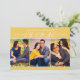 De här moderna och snyggt bröllop spara datum-meddelandekorten innehåller tre bilder på 2 x 3-förlovningar med det datum som visas i elegantens skript. Anpassa kortmallens ordalydelse på kortets framsida och baksida till din stora dag. Marigold gult och vit färger kan anpassas för att samordnas med ditt bröllop färg-system.