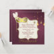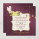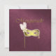 Elegant maskerad festinbjudan utförd i en vacker burgunder Fleur-damaskdesign, med grafik av en guldfärgad glitterkantad textarea. Snygg grafik av en utsmyckad guldfärgad mask och dekorativa kulor som hänger ner från toppen och guldfärgad grafisk text, längst ner med texten Maskerad. Text i en marin färg är helt anpassningsbar för att passa dina evenemangsbehov.
