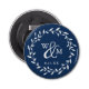 Eleganta marinblå flasköppnare med blommig rund knapp och ditt monogram och datum. Perfekt idé som bröllagsgåvor eller presenter till gäster för alla tillfällen.