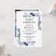 Elegant marinblå blomstermönstrad QR-baby shower Inbjudningar