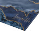 Förhöj kökets estetik med denna fantastiska skärbräda i marinblå och guld agatgeod, med djupa virvlande ädelstensstrukturer och skimrande falska guldådror. De naturliga agatinspirerade lagren skapar en lyxig, modern look, medan det personliga namnet i skrivstil ger en anpassad touch som gör den verkligen unik.
