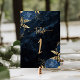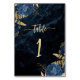 Elegant marinblå guldblommig bröllopsfest bordsnummer