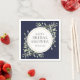 Med känsliga vattenfärgblad i grönska på en marinblå bakgrund kan denna snygga botaniska servett för bröllopsfest personaliseras med din speciella information om bröllopsfest. Designad av Thisisnotme