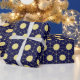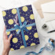 Elegant marinblå och gul geometrisk kakel mönster presentpapper