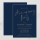 Elegant marinblå och guld bröllopsjubileumfest med inbjudningar