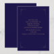 Fira din speciella dag med detta utsökta marinblå bröllops-kort för att spara datum. Perfekt för par som söker en formell, elegant och tidlös design, kombinerar detta kort klassisk typografi med en sofistikerad layout. Idealiskt för lyxbröllop, det innehåller tydliga sektioner för namn, datum, tid och plats, allt vackert markerat i guld mot en djup marinblå bakgrund.