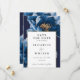Denna eleganta marinblå och guldblommiga bröllops klara att spara datum kan anpassas med din information i modern typografi. Designad av Thisisnotme©