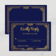 Elegant marinblå och gulddekorerad bröllops-RSVP OSA Kort